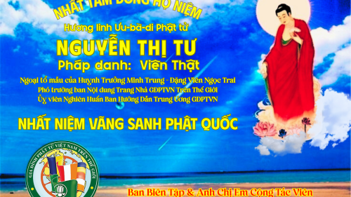 NAM MÔ A DI ĐÀ PHẬT BAN BIÊN TẬP TRANG NHÀ GĐPTVN TRÊN THẾ GIỚI Hay tin Ưu-bà-di Phật tử NGUYỄN THỊ TƯ Pháp danh Viên Thật Sinh năm: Kỷ…